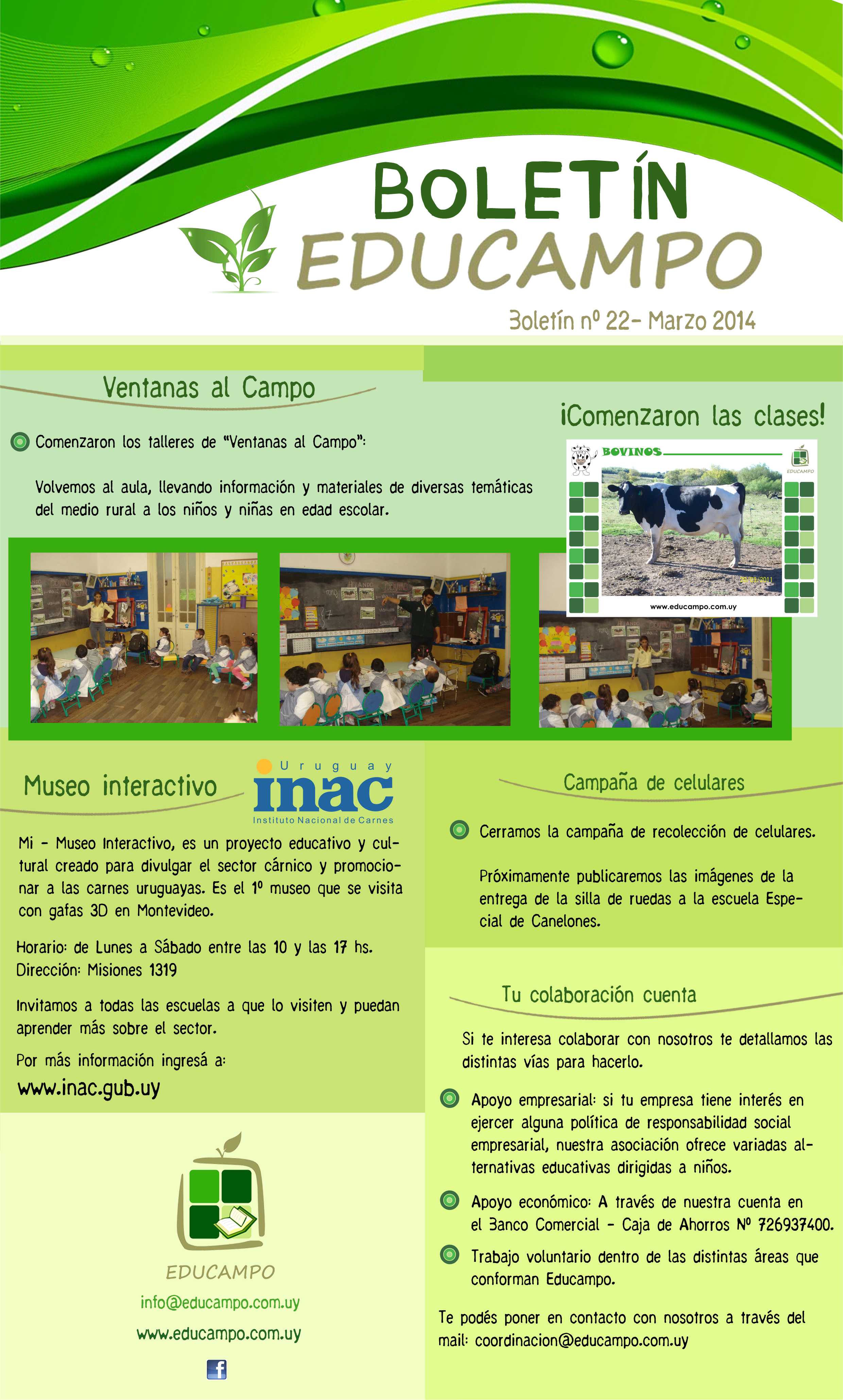 La asociación civil realiza talleres en escuelas públicas de Montevideo, para acercar la realidad del campo uruguayo a los niños. Recorre algunas de las acciones que desarrollan en este boletín. Apoya INAC