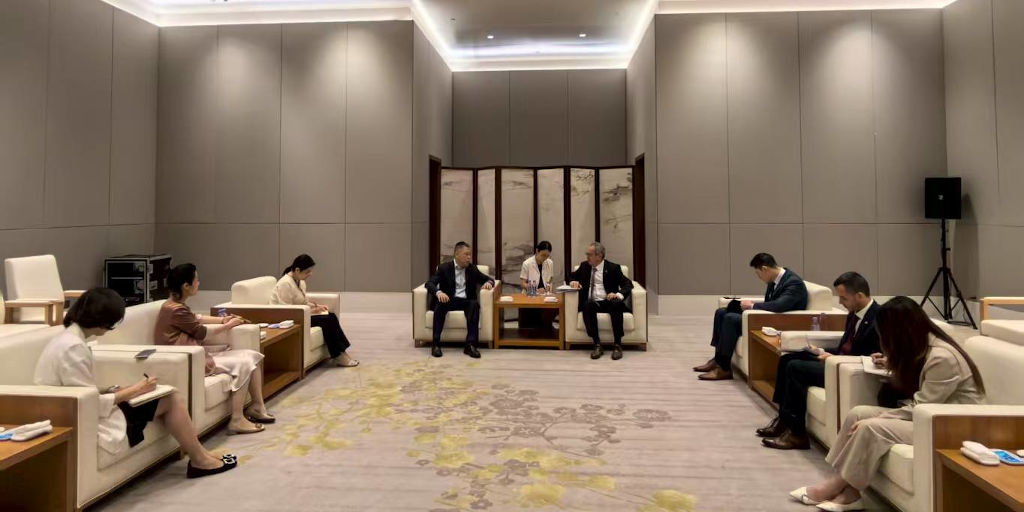 En en el marco de una nueva visita oficial de INAC a China, el Presidente del Instituto Gastón Scayola, junto al Jefe de Acceso a Mercados, Christian Shaw y la Gerente de la Oficina de INAC en Asia, Victoria Cai, se reunieron con la Asociación Cárnica de China (CMA). Participaron del encuentro el Cónsul General uruguayo en el Sur de China Facundo Fernández y por la parte china el Presidente de CMA Chen Wei, la Directora de la Cooperación Internacional Michelle Hu, y la Analista Xiao Shaoqiong.