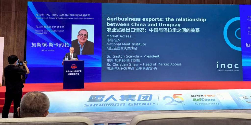 En el mismo día el Presidente de INAC y el Jefe de Acceso a Mercados participaron como expositores en el Foro Global de la Industria de Carne, Comercio y de Desarrollo de Servicios organizado por la Asociación de Cárnica de China (CMA). En el bloque de la conferencia “Las tendencias mundiales de la carne bovina y ovina”, INAC presentó las condiciones y atributos del sistema ganadero uruguayo. También participaron representantes de institutos de carne de Canadá, Francia, Nueva Zelandia, Brasil, entre otros.
